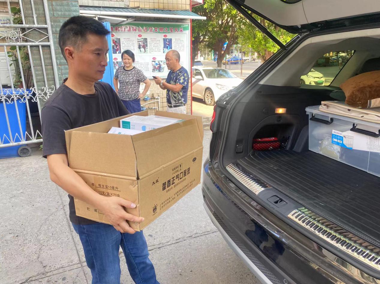 鴻達設(shè)計公司特購買礦泉水、藿香正氣液和口罩贈送給雙橋收費站、雙才收費站、椑木收費站、郭北收費站、田家收費站、小河口收費站、石子國省干道等7個卡點的工作人員。