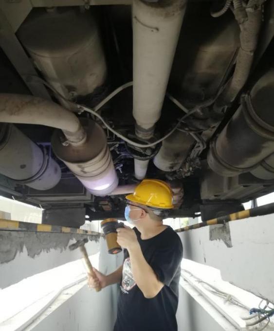 一把榔頭只為堅(jiān)守源頭安全。在車(chē)站車(chē)輛例檢處,例檢員劉海正在烈日下作業(yè),滾燙的水泥地面、發(fā)熱的客車(chē)底盤(pán)和客車(chē)尾氣讓車(chē)輛例檢臺(tái)溫度更高。劉海不停地在車(chē)輛底部鉆進(jìn)鉆出,從燈光、轉(zhuǎn)向、制動(dòng)、底盤(pán),到車(chē)胎、螺絲、安全帶、消防錘等,認(rèn)真檢查著每一個(gè)車(chē)輛部件??蛙?chē)底部的高溫讓他下去一次便全身濕透一次,臉上的汗也順著頭發(fā)往下滴落說(shuō)起自己的工作,劉海認(rèn)為雖然工作環(huán)境惡劣一些,但是與售票員、檢票員并沒(méi)有什么不一樣,只是分工不同,做好車(chē)輛例檢工作,保障客車(chē)運(yùn)行安全,是們的責(zé)任,目的都是為旅客出行服務(wù)。